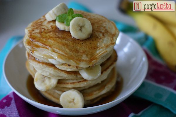 Naleśniki smażyłam na złoty kolor na rozgrzanej patelni z odrobiną oleju. Jeszcze ciepłe podawałam z bananami i syropem klonowym.