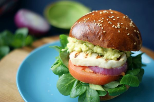 Domowe burgery z grillowanym serem halloumi i guacamole