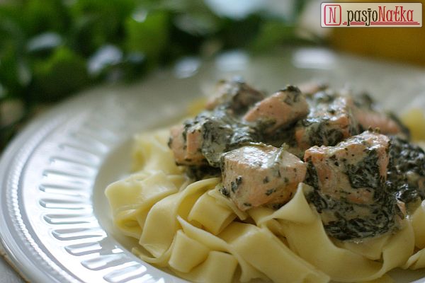 Jak już wspominałam na blogu będzie się pojawiać coraz więcej przepisów na ryby, w szczególności na łososia, którego uwielbiam. Dziś zapraszam Was na pyszne danie makaronowe z łososiem i szpinakiem w sosie śmietanowym.