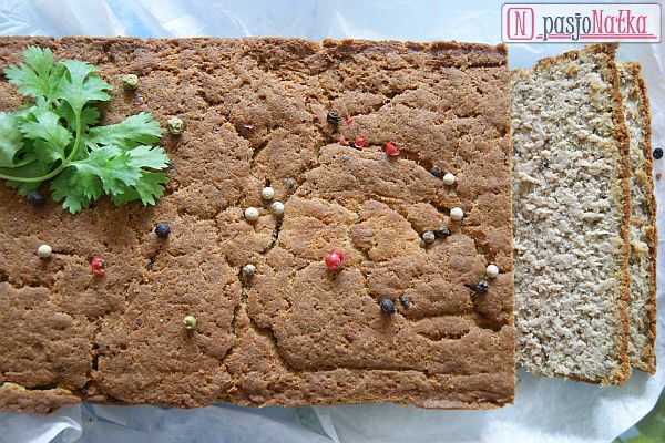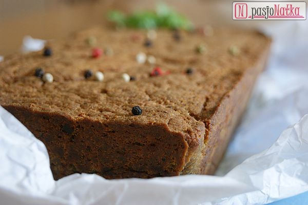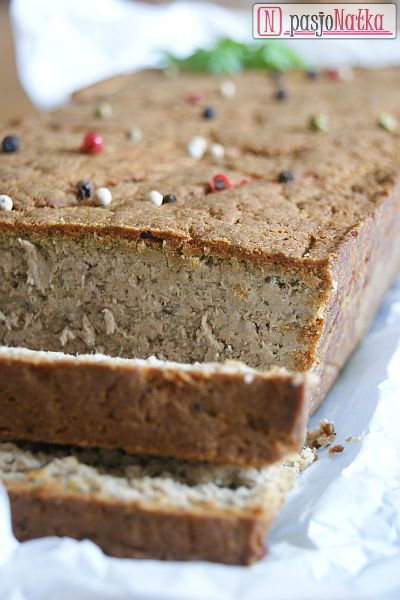 Gdy pasztet miał odpowiednią konsystencję przekładałam go do keksówki wyścielonej papierem do pieczenia (blachę można również posmarować słoniną i posypać bułką tartą) i dokładnie ugniatałam, żeby nie powstały puste przestrzenie. Pasztet zapiekałam w 190 stopniach C przez 60 minut.