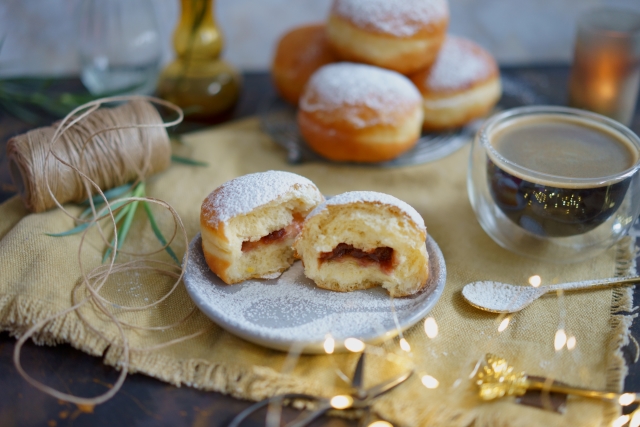 - Pączki bez nadzienia wypełnić marmoladą przy użyciu specjalnej tylki.