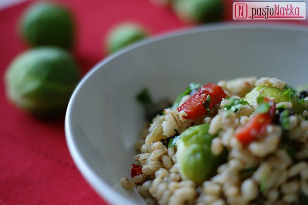 Ugotowaną brukselkę pokroiłam na połówki i delikatnie obsmażyłam razem z pozostałymi warzywami.