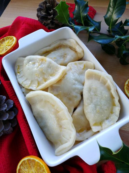 Co roku na wigilijnym stole, obok uszek z grzybami, królują pierogi z kapustą i grzybami. Idealnie smakują solo lub komponują się z barszczem czerwonym. Można przygotować je kilka dni przed wigilią, lekko obgotować i zamrozić, ale oczywiście najlepsze są świeżo przygotowane 🙂