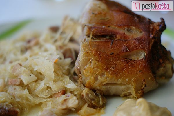 Gotowe golonki podawałam na zasmażanej kapuście z dodatkiem musztardy.