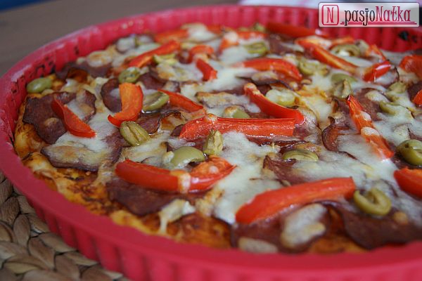 Otwierasz lodówkę i widzisz: salami, paprykę, oliwki i mozzarellę. Co robisz??? PYSZNĄ pizzę na gruuuuubyyyyym cieście według mojego przepisu 😉