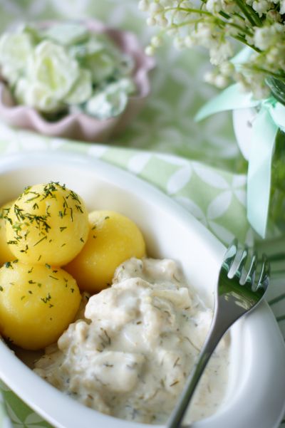 Dziś przepis na wiosennego „zwyklaka”: kluski śląskie, sos śmietanowo-koperkowy i mizeria 🙂