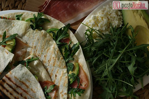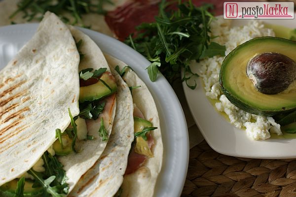 Quesadilla z szynką szwarcwaldzką, rukolą i awokado