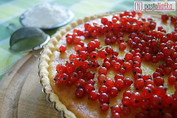 Dziś zapraszam na słodko – kwaśną serową tartę z porzeczkami. Przepis wpadł mi do głowy przy okazji spacerowania po ogrodzie i podziwiania obwieszonych czerwonymi koralikami krzaków porzeczek.