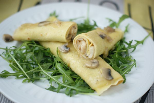 Naleśniki z kurczakiem w rukoli
