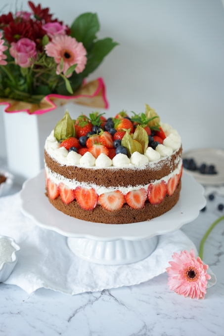 Dziś mam dla Was coś specjalnego, bo dziś jest wyjątkowy dzień – Dzień Mamy <3 Pyszny tort czekoladowy przełożony lekkim kremem śmietankowym, a do tego świeże owoce – połączenie idealne 🙂